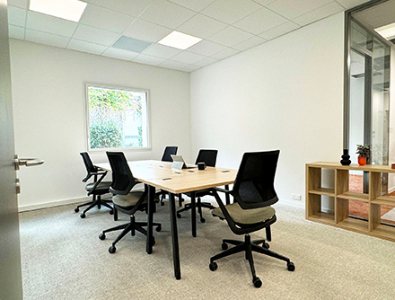 Équipe installée dans un bureau privatif de 6 postes.